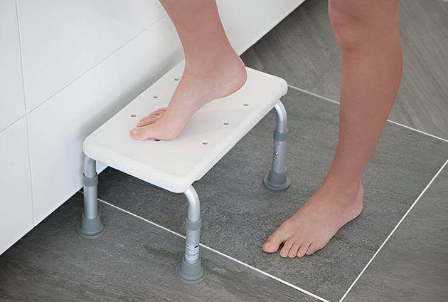 Our aluminium bath step is ideal to assist getting in and out of the bath. It is height adjustable and comes complete with non slip feet. Footprint: 410 x 230mm; Height: 205-260mm.