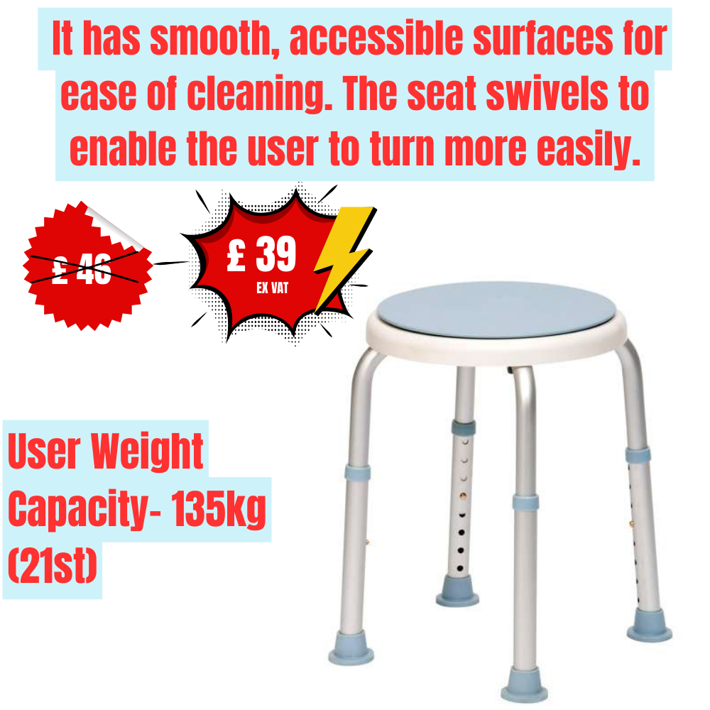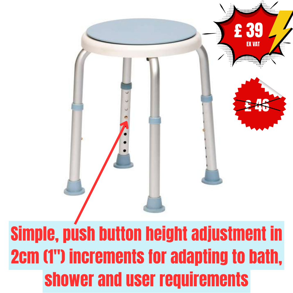 • Simple, push button height adjustment in 2cm (1″) increments for adapting to bath, shower and user requirements