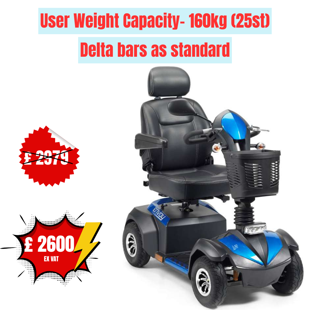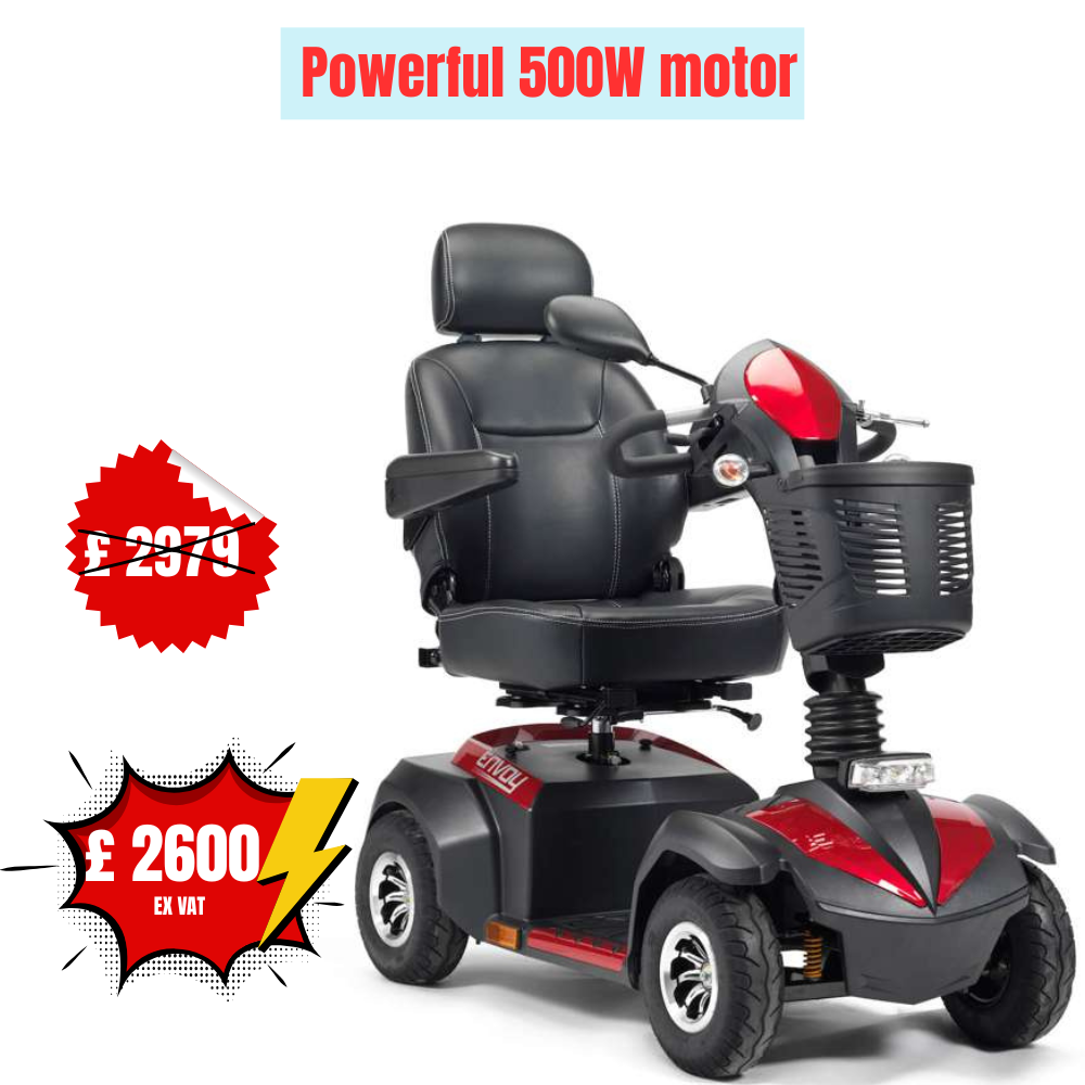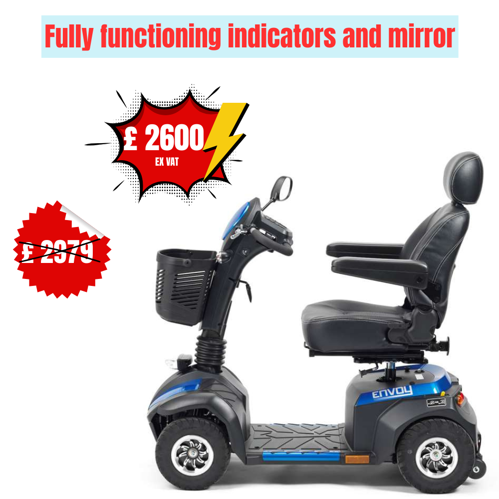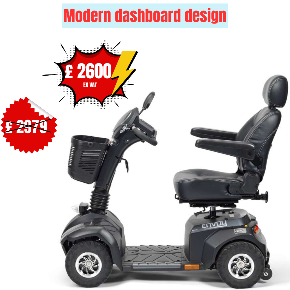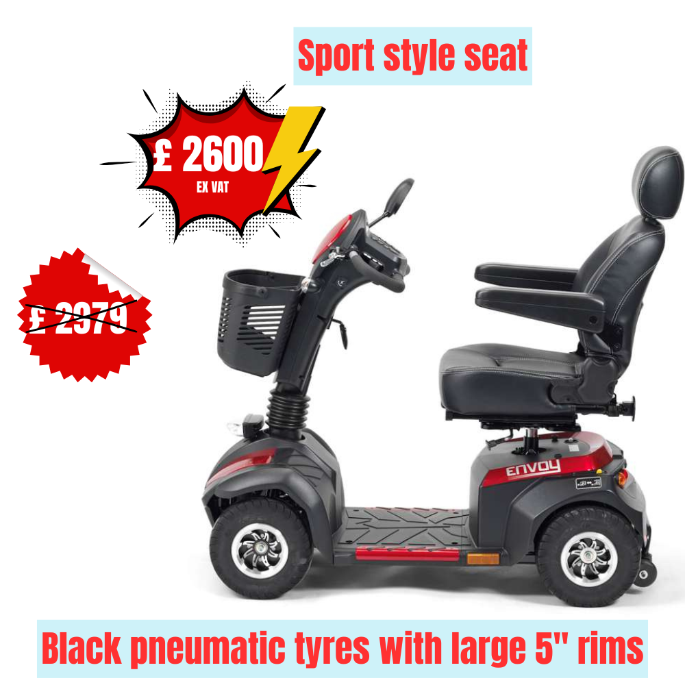 The Envoy 6 Scooter features an impressive range of up to 30 miles on a full battery charge and a top speed of 6mph*. All-round suspension, adjustable tiller, armrests and seat position ensure a comfortable ride for the user. The Envoy also includes a free-wheel switch which disengages the automatic brake, therefore the scooter can be manually pushed and manoeuvred.