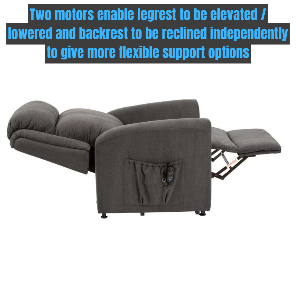 • Two motors enable legrest to be elevated / lowered and backrest to be reclined independently to give more flexible support options