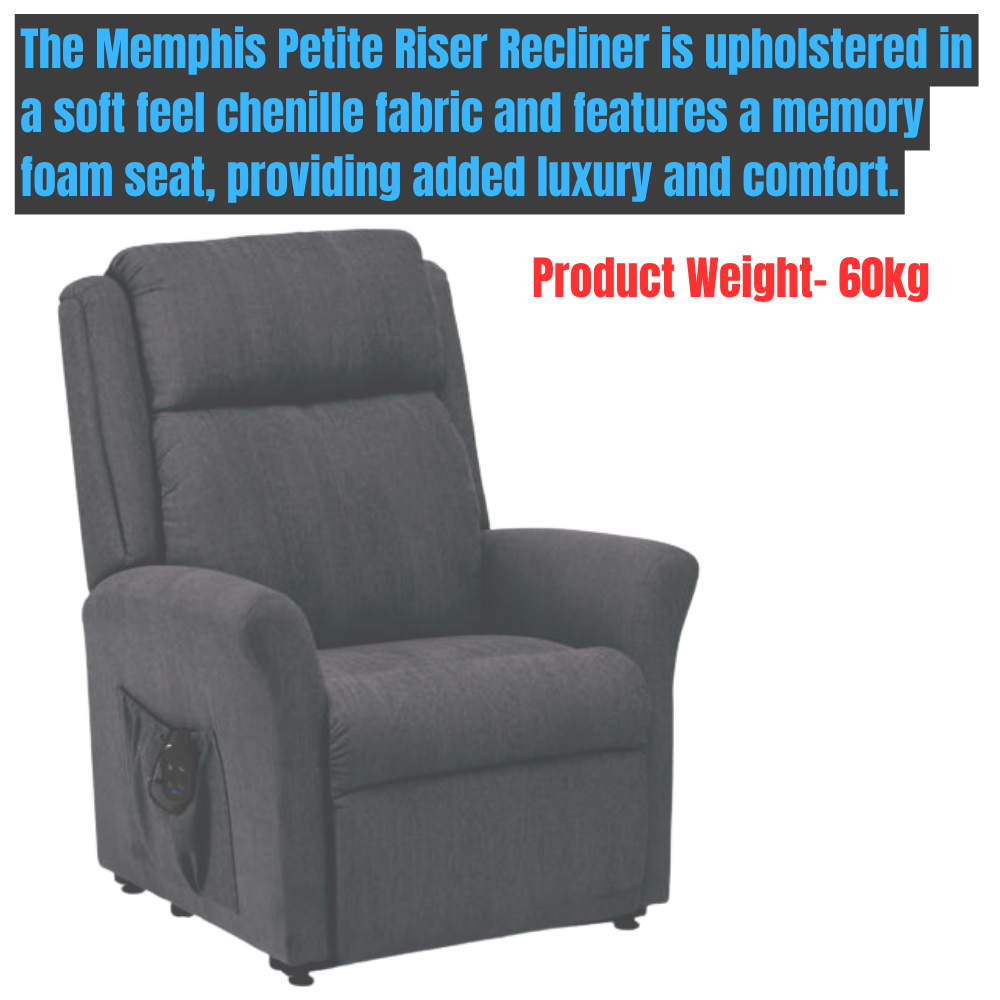 The Memphis Petite Riser Recliner is upholstered in a soft feel chenille fabric and features a memory foam seat, providing added luxury and comfort. The dual motor mechanism enables the user to find their perfect comfort position.
