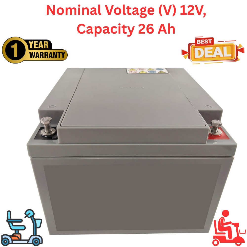 Mobility devices (power chairs, scooters) compatible with 12 V/26 Ah spec