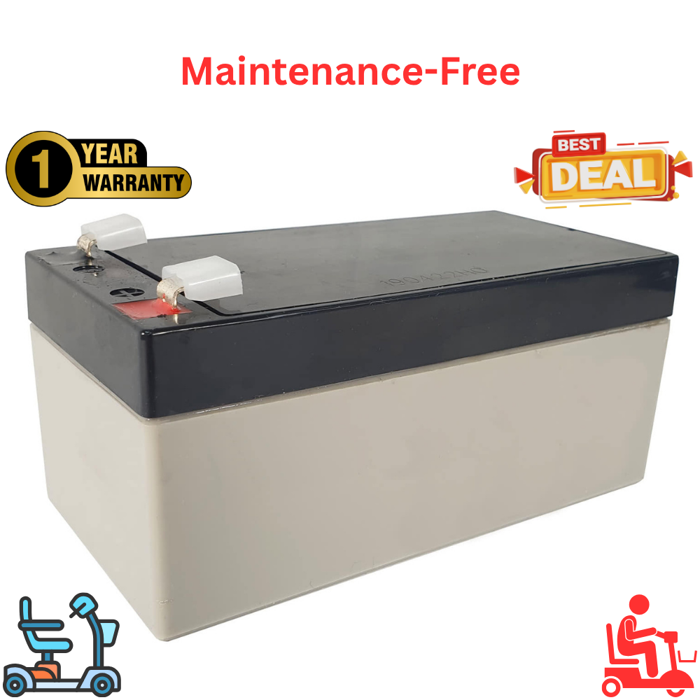 Case: Maintenance-free sealed lead-acid (VRLA) battery — no watering required, spill-proof design.