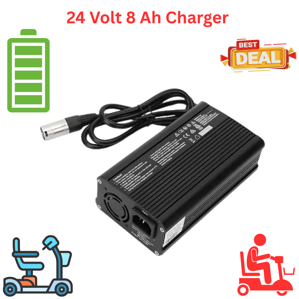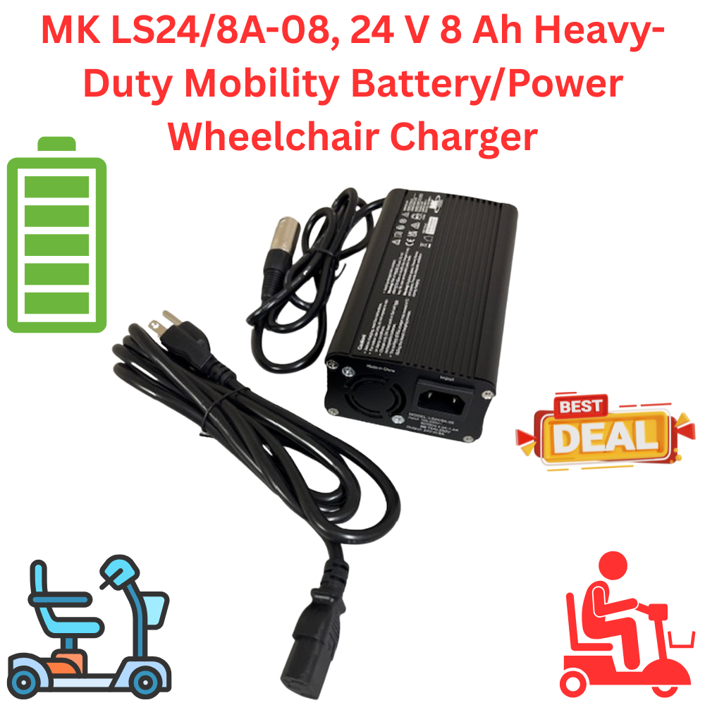 If you’re replacing a charger for a 24 V mobility battery system, or you need a reliable high-current charger for a heavy battery pack, this LS24/8A-08 unit offers a high output (8 A) which means faster/stronger charging compared to lower current chargers. Its built-in protections and LED indicators provide added peace of mind — you’re getting a charger optimized for mobility equipment where downtime or battery exhaustion isn’t acceptable.