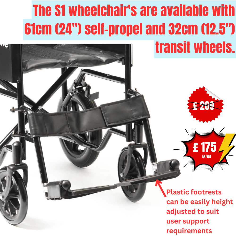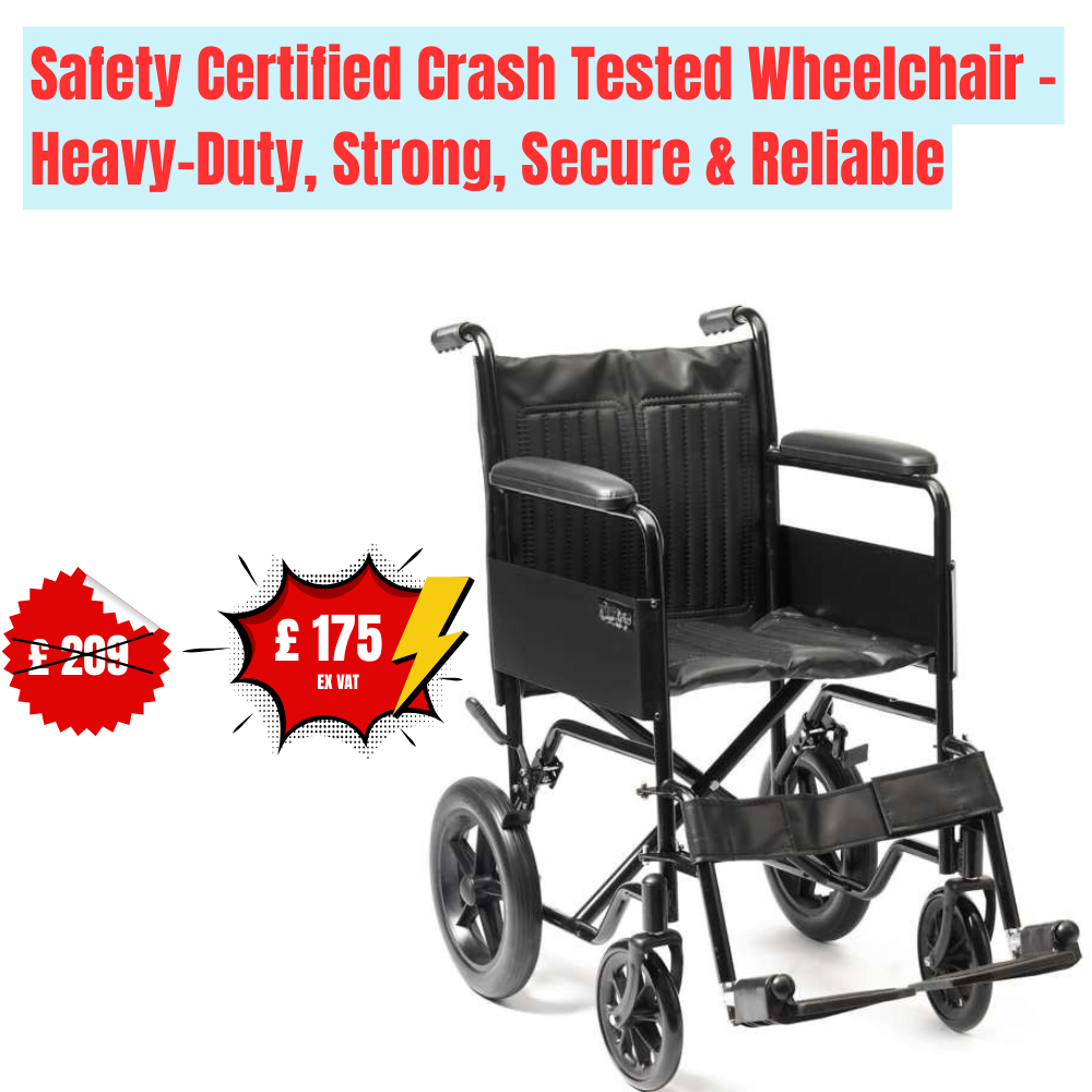 • The S1 Steel Wheelchairs, both Transit (CS1142T) and Self-Propel versions (CS1142SPMAG) are crash test compliant and suitable for use as a seat in a motor vehicle as per ISO 7176-19.
