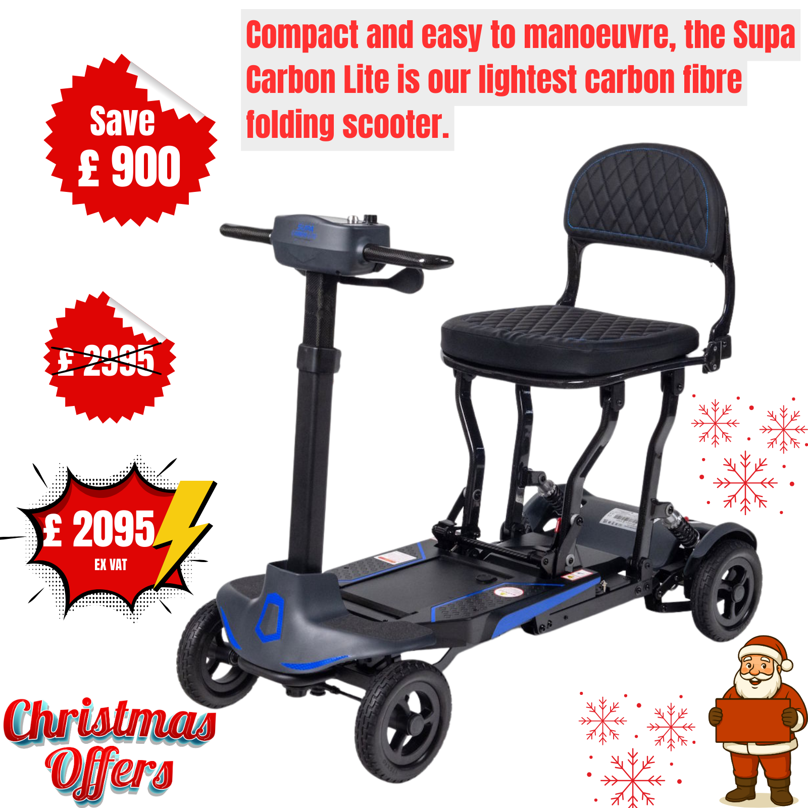The new Supa Carbon Lite is a foldable, ultra lightweight mobility scooter – weighing in at just 13kg.