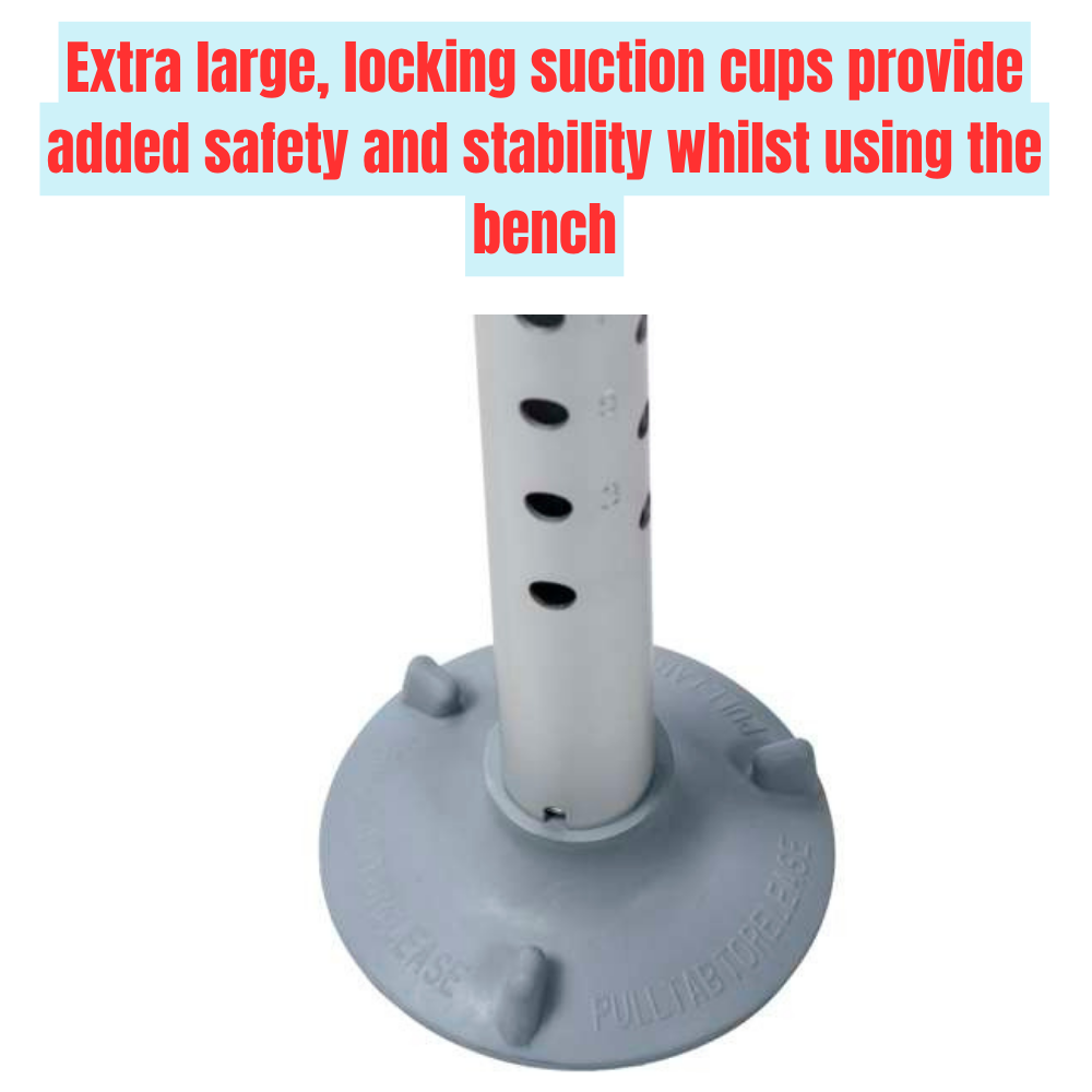 • Extra large, locking suction cups provide added safety and stability whilst using the bench