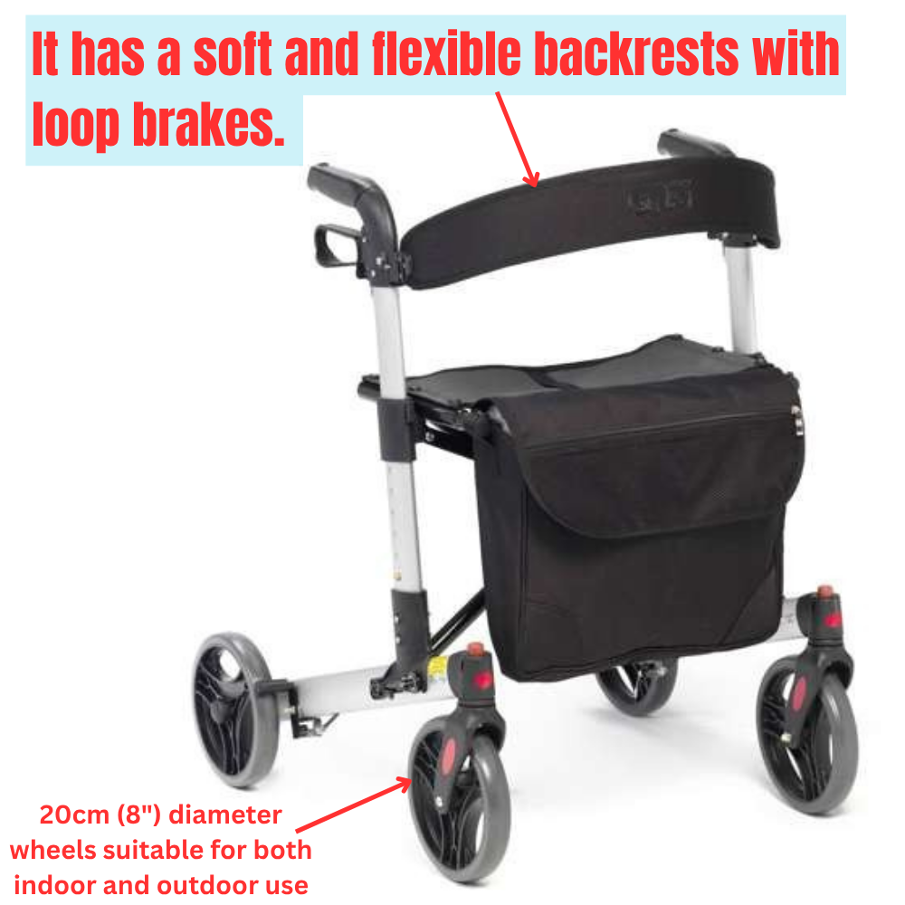 20cm (8″) diameter wheels suitable for both indoor and outdoor use