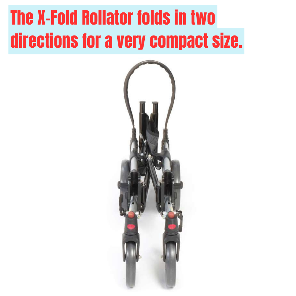Integral seat handle serves as a useful handgrip for pulling rollator when used as a shopper or for carrying when folded